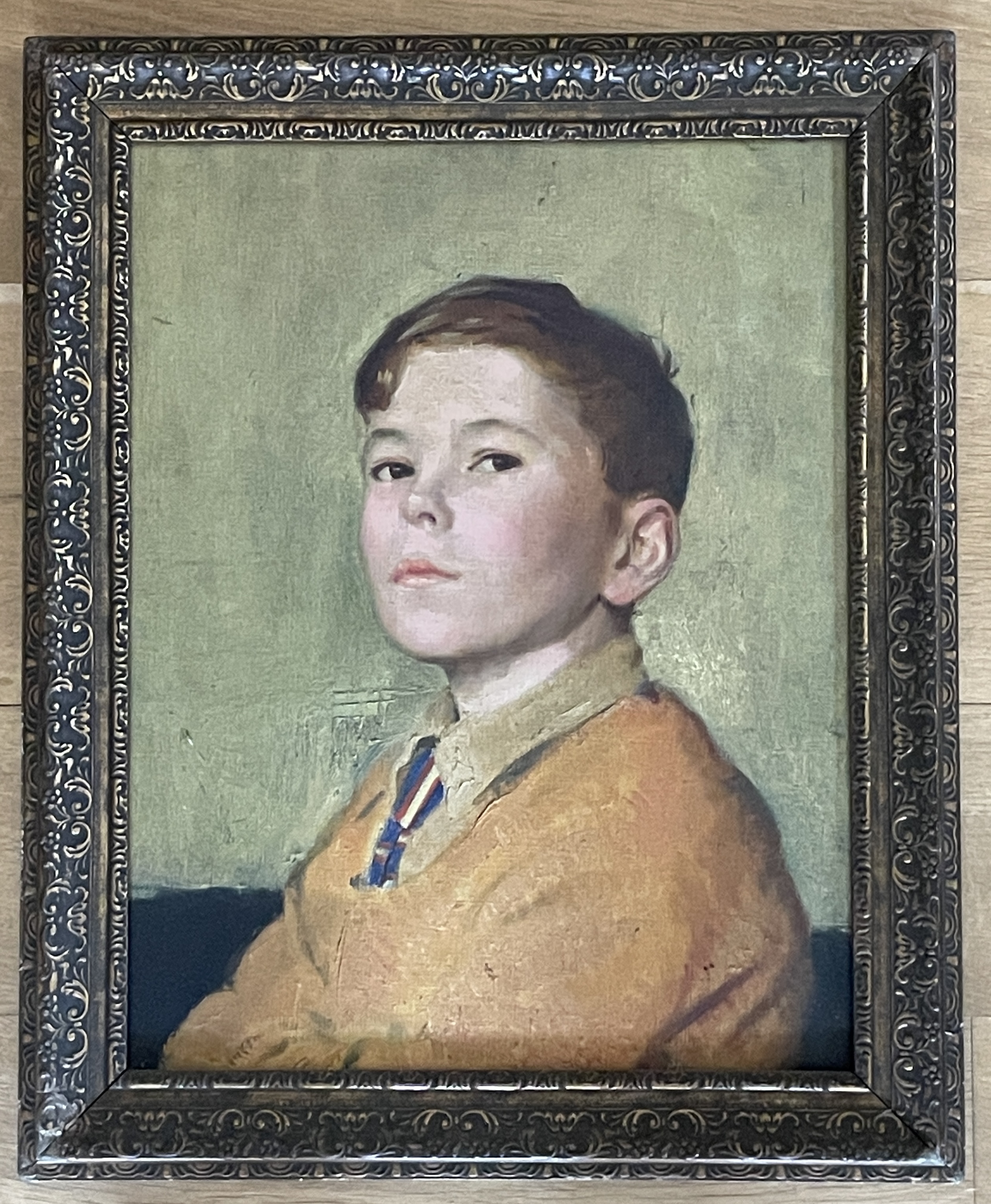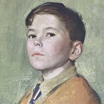 Paul Dessau Portrait of a Boy Oil on Canvas Frame: 22” x 17” Image: 17” x 14” Paul Lucien Dessau, (15 September 1909 – 3 September 1999), was a British artist best known for the paintings he produced during the Second World War whilst serving as a fireman in London. After the war Dessau, and his wife whom he had married in 1935, moved out of London and settled in the country, where he pursued a career as a successful portrait painter.[3] He was also an accomplished, and largely self-taught, pianist and, less successfully, an inventor of household gadgets.