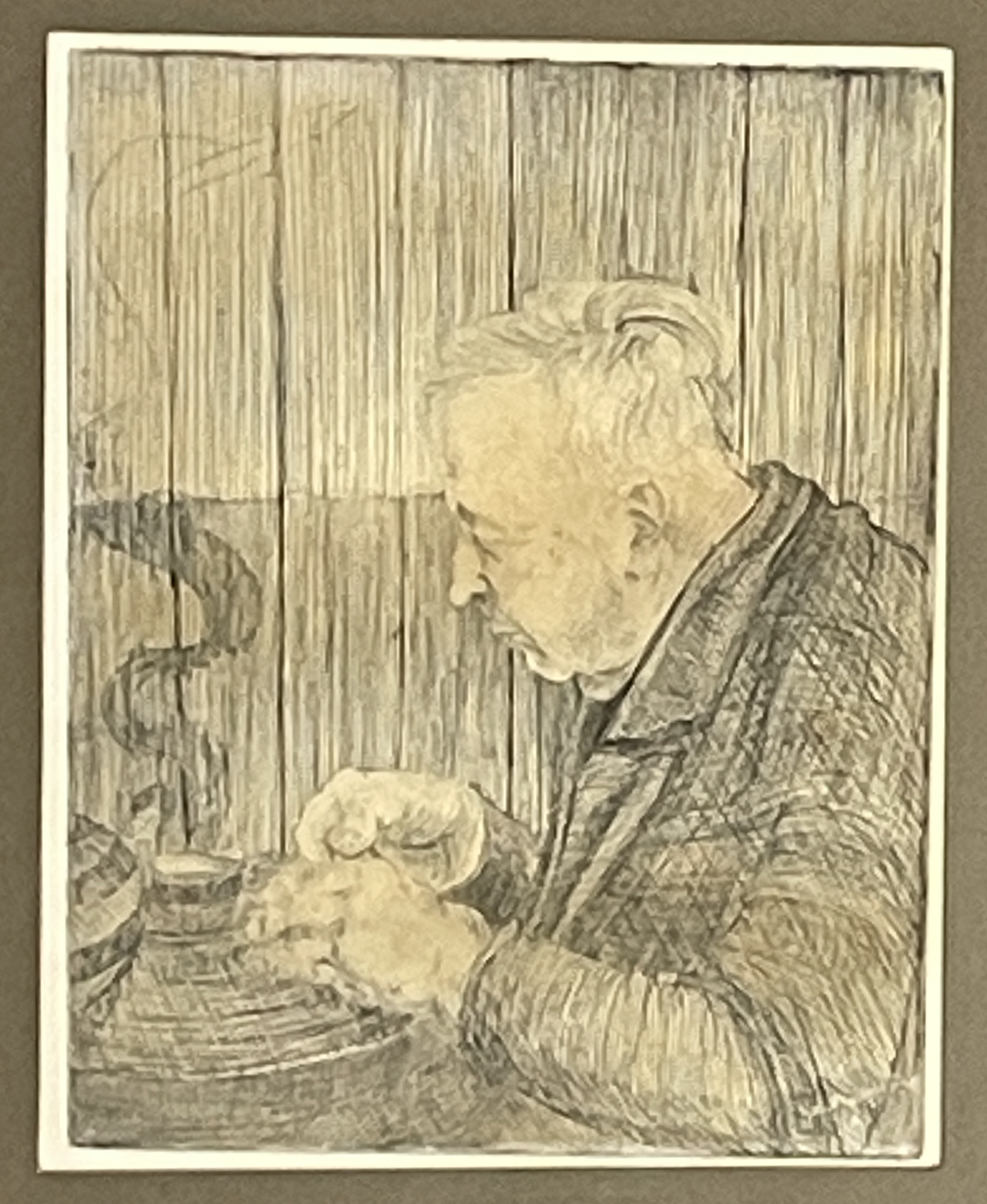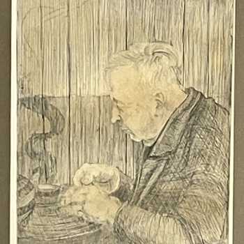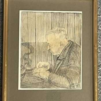 Zita Patinson At Tinley’s Etching Frame: 10” x 8” Image: 7” x 5” Zita Patinson (1917 - 1973) was an Exeter artist who made this etching of a scene in Tinley’s Tearooms, a landmark cafe overlooking the Exeter Cathedral Close in the late 1950s. Tinley’s closed in 1992.