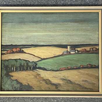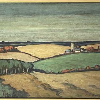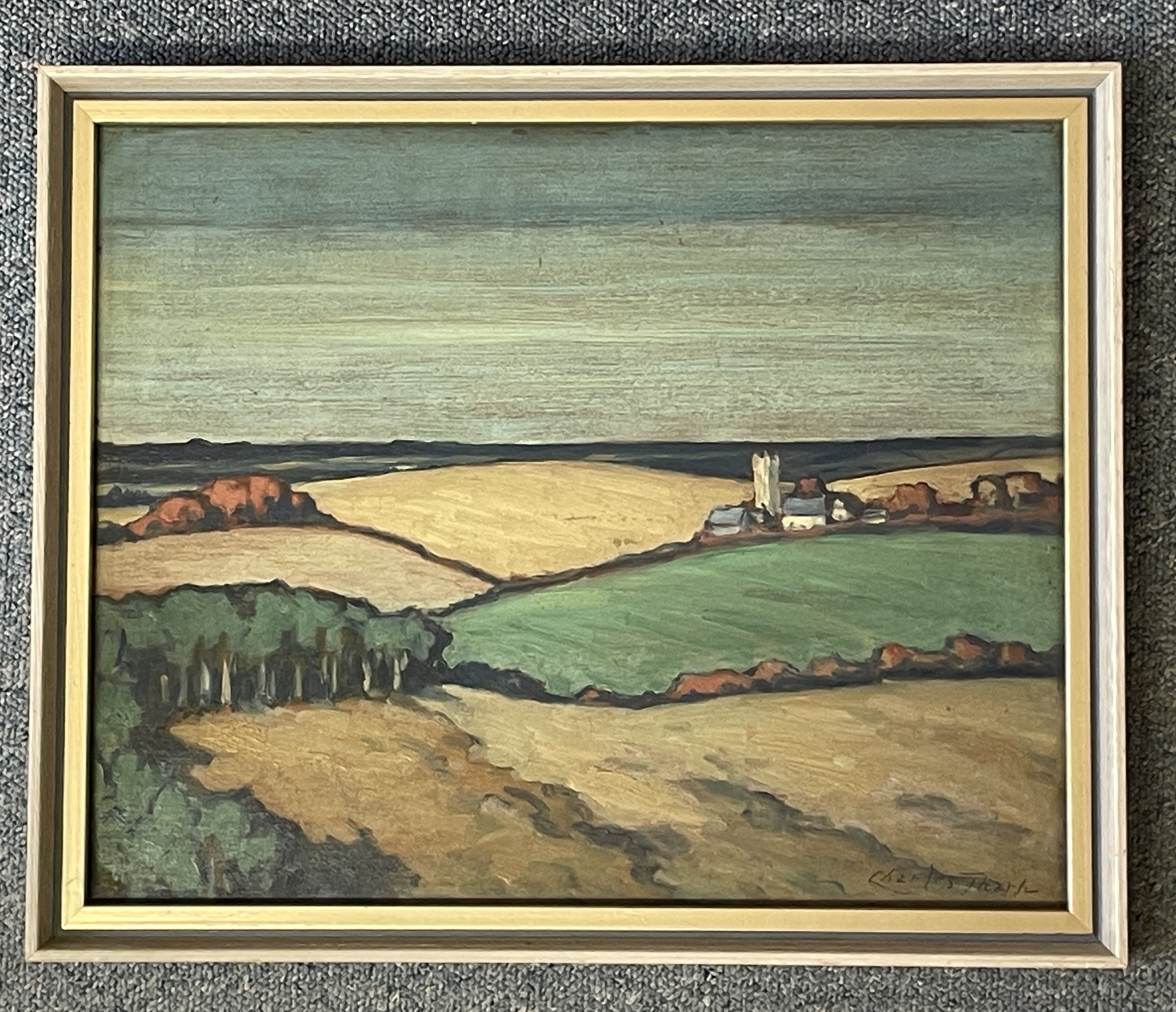 Charles Tharp Landscape with Church Oil on Board Signed Frame: 14” x 17” Image: 13” x 15” Charles Tharp (1878-1951) A portrait and landscape painter and sculptor, who exhibited at the Royal Academy; Cooling Galleries; Royal Glasgow Institute of the Fine Arts; Goupil Gallery; International Society of Sculptors Painters; Walker Art Gallery; Manchester City Art Gallery; the New English Art Club; New Gallery; Royal Society of Portrait Painters; Royal Hibernian Academy; Royal Institute of Oil Painters and the Royal Scottish Academy. Charles Julian Tharp died at Chichester, Sussex in October 1951, aged 73. He signed his works 'Charles Tharp'
