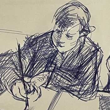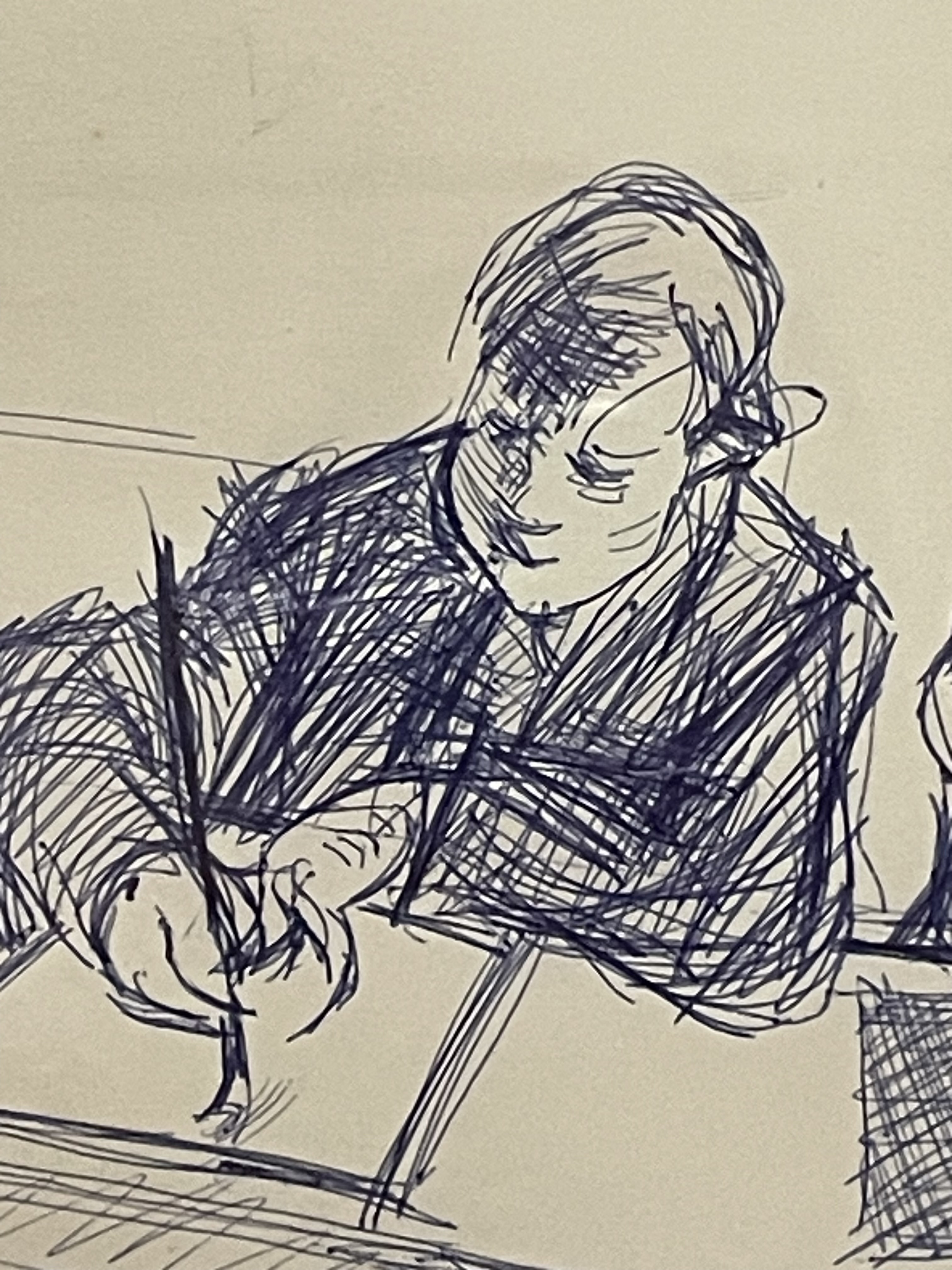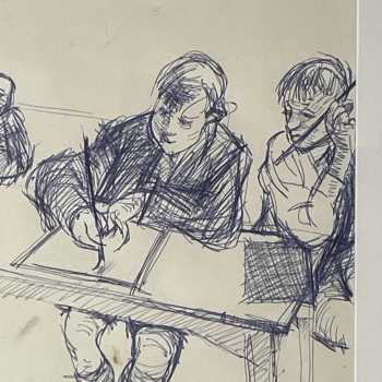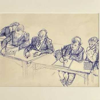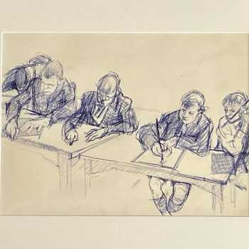 Devon Schoolboys Robert Lenkiewicz (1941-2002) Biro Frame: 16” x 24” Image: 9” x 13” This was drawn in the 1960s when the artist supported his young family by teaching in Devon and Cornwall.