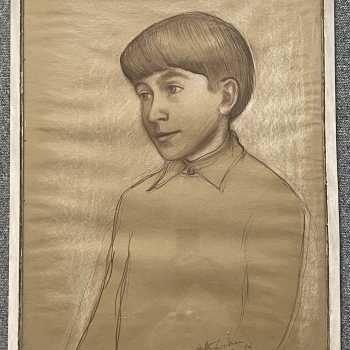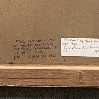 Paul Watson at 13 Arthur Goodwin Crayon and Pencil on Paper Signed, and inscribed on reverse. Frame: 23” x 20” Image: 22” x 19” Arthur Goodwin (1922-1988) studied at Liverpool College of Art before rising to vice-principal at Exeter College of Art under Clifford Fishwick. His works are held in many public collections. Paul Watson is the grandson of the famous American anthropologist Edwin Loeb.