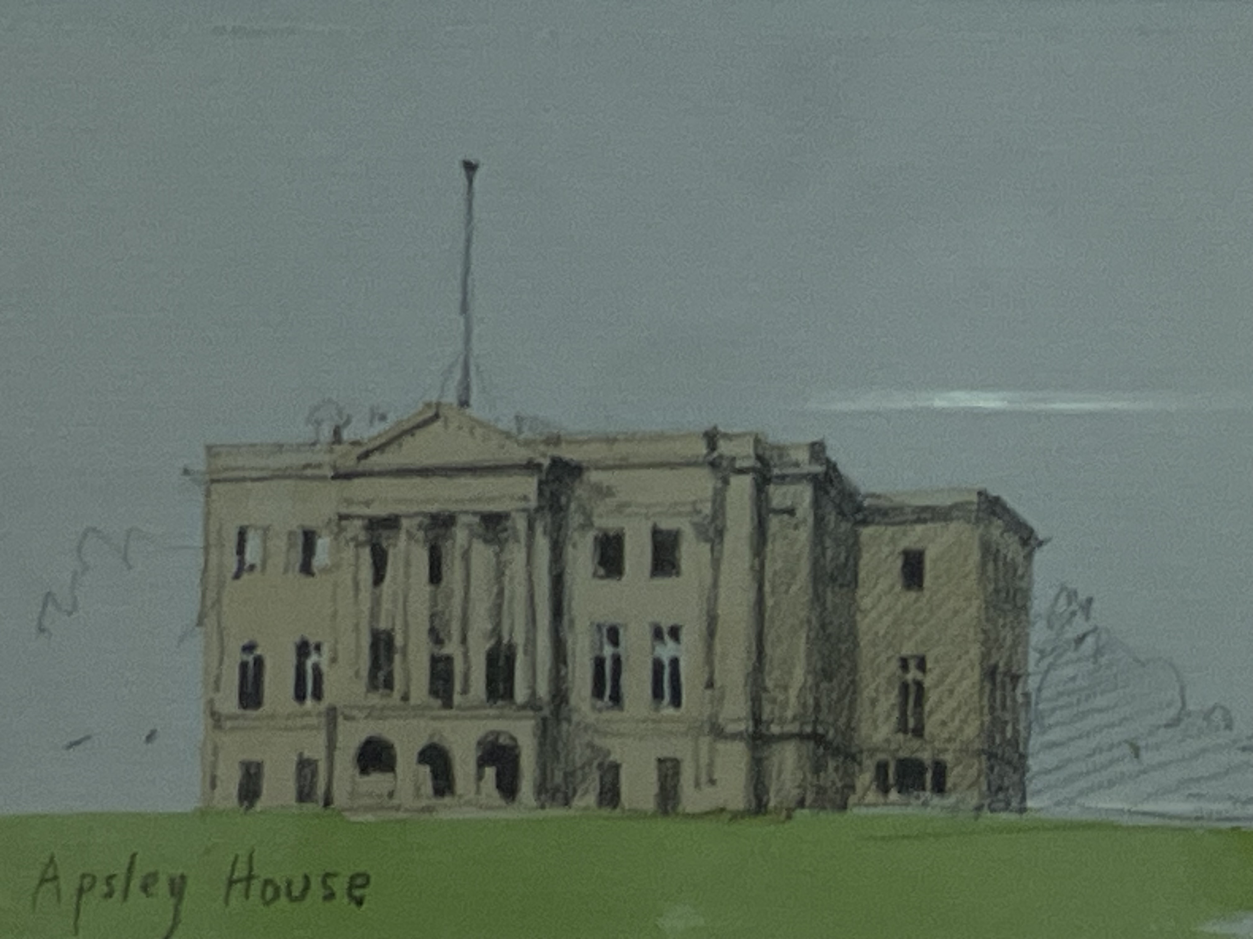 Apsley House John Sergeant (1937 - 2010) Pencil and Wash Frame: 8” x 10” Image: 3.5” x 5” John Sergeant is probably best known for his association with Charles, then Prince of Wales.