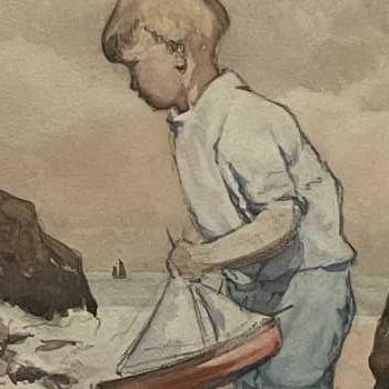 Boy with Toy Boat William Ingles (1884 - 1946) Frame: 18” x 14” Image: 11” x 7” William Ingles lived in Hawick, Roxburghshire, Scotland. The 1901 Census shows that William was then a young art teacher in Hawick. He later exhibited at the Royal Scottish Academy.